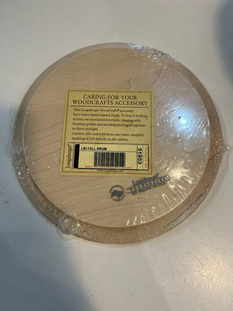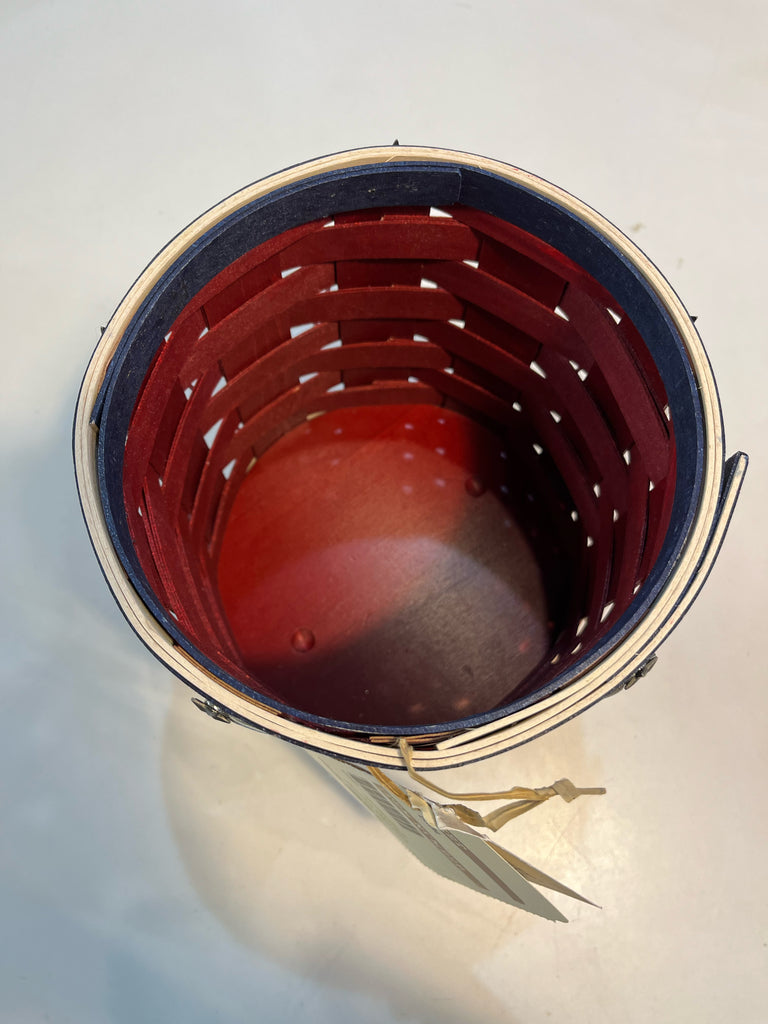 Longaberger Tall Red Drum Lidded Basket, no liner, w/ tag, 6.5"D x 7"H