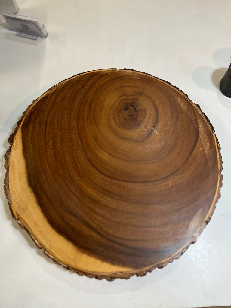 B.Smith Brown Wood Raw Edge Lazy Susan, 15"D