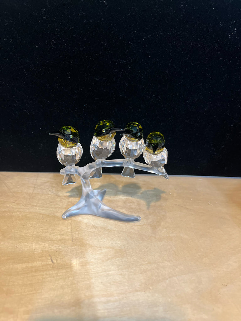 Retired Swarovski "Bee Eaters on a Branch" Figurine, w/ box, 3.25"L x 3"H