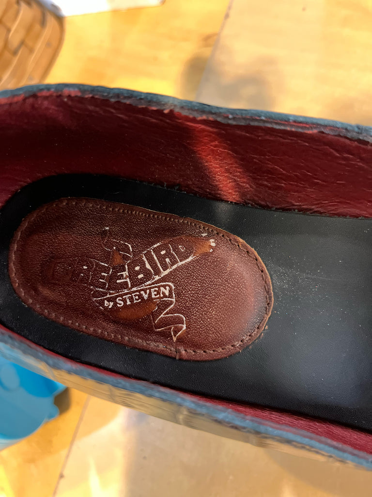 Free Bird Turquoise "Randi" Heel Shoes, size:9, retail $195, croc embossed leather shoes