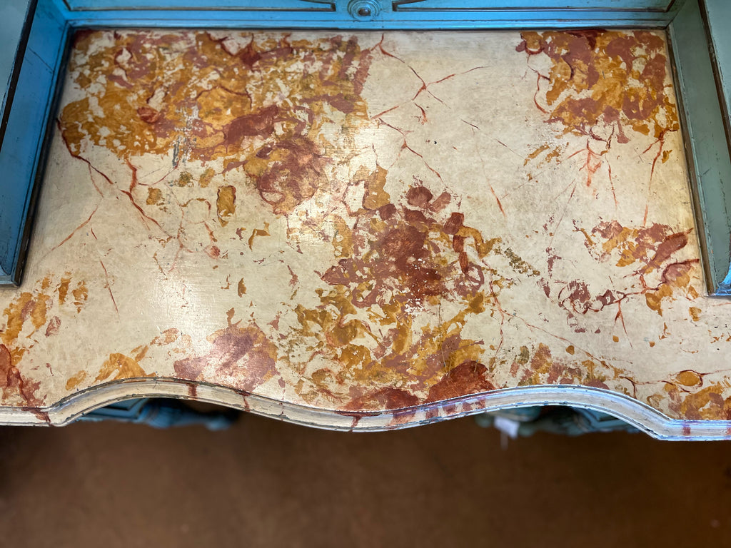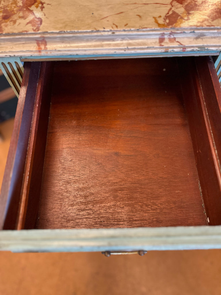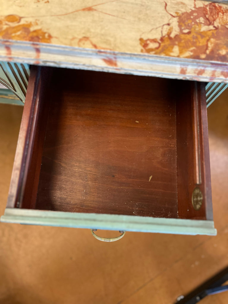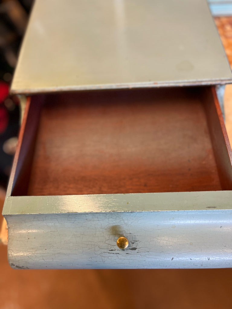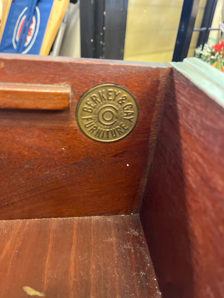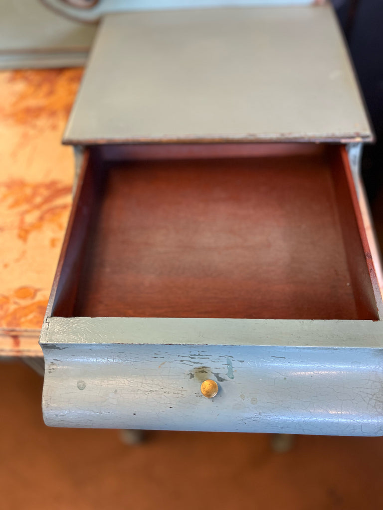 Berkey & Gay Furniture Shabby Chic Vanity & Stool, 54"L x 19"W x 30.5"H, removable mirror and top drawers, w/ dovetail detail in drawers