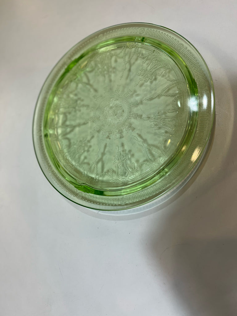 Vintage Hocking Green Depression Glass Cake Plate w/ ballerina footed, 10"D