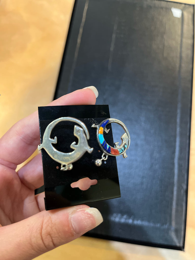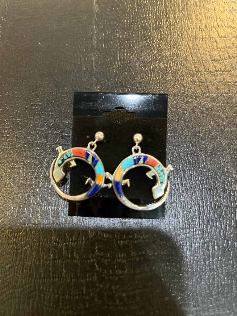 S.S. & Multi-stone circle earrings in the shape of a lizard
