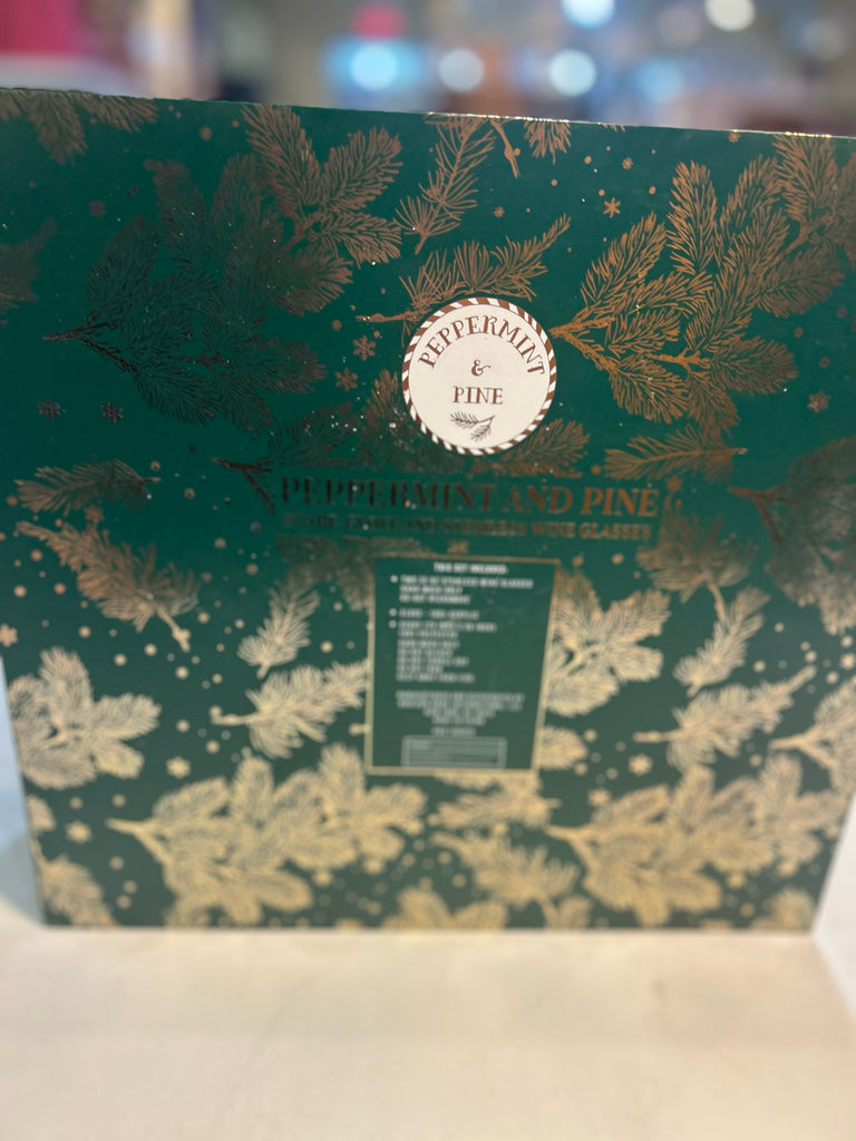 Peppermint & Pine Wine Glasses, Scarf & Gloves Gift Set NIB