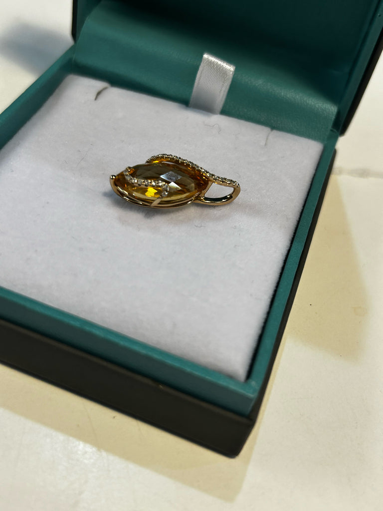 Effy Sunset 14k Yellow Gold Citrine Diamond Pear Pendant, no chain, retail $1,365