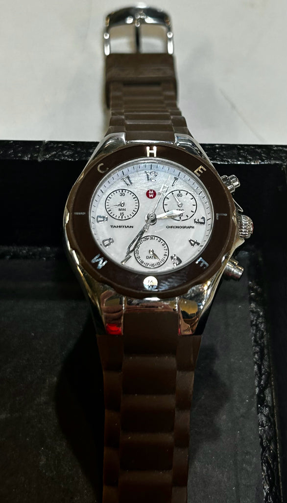 Michele Tahitian Jelly Bean Watch BROWN with Silver