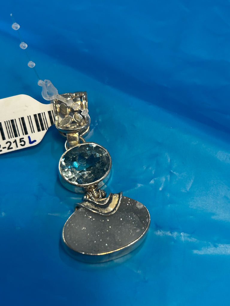 Sajen S.S. Two-Stone pendant-white druzy and blue stone pendant