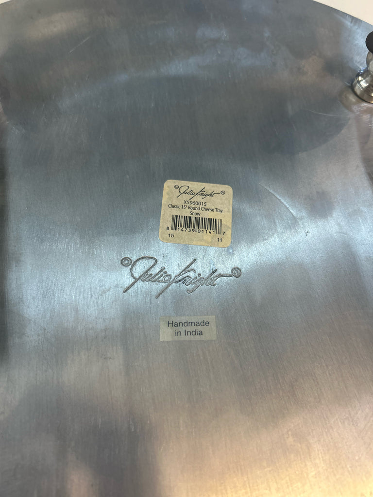Julia Knight 15" Round Footed Cheese Tray Mother of Pearl Enameled with Slicer and Box