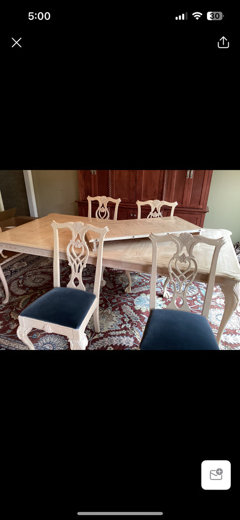 Custom Walter E Smithe Ivory Wood Dining Room Table 66.5 x 42" & (4) Chairs + custom pad & (2) 20" leaves