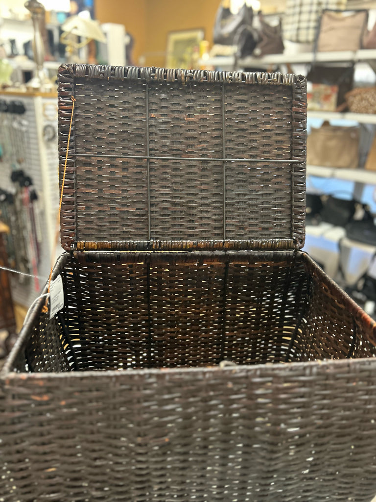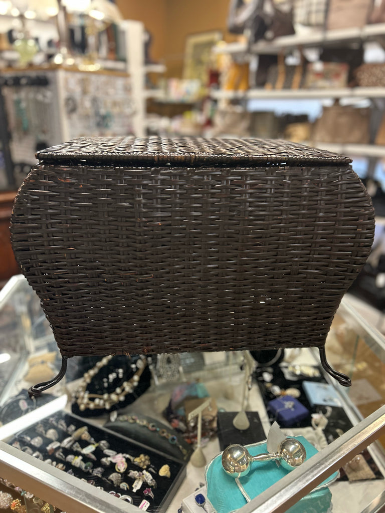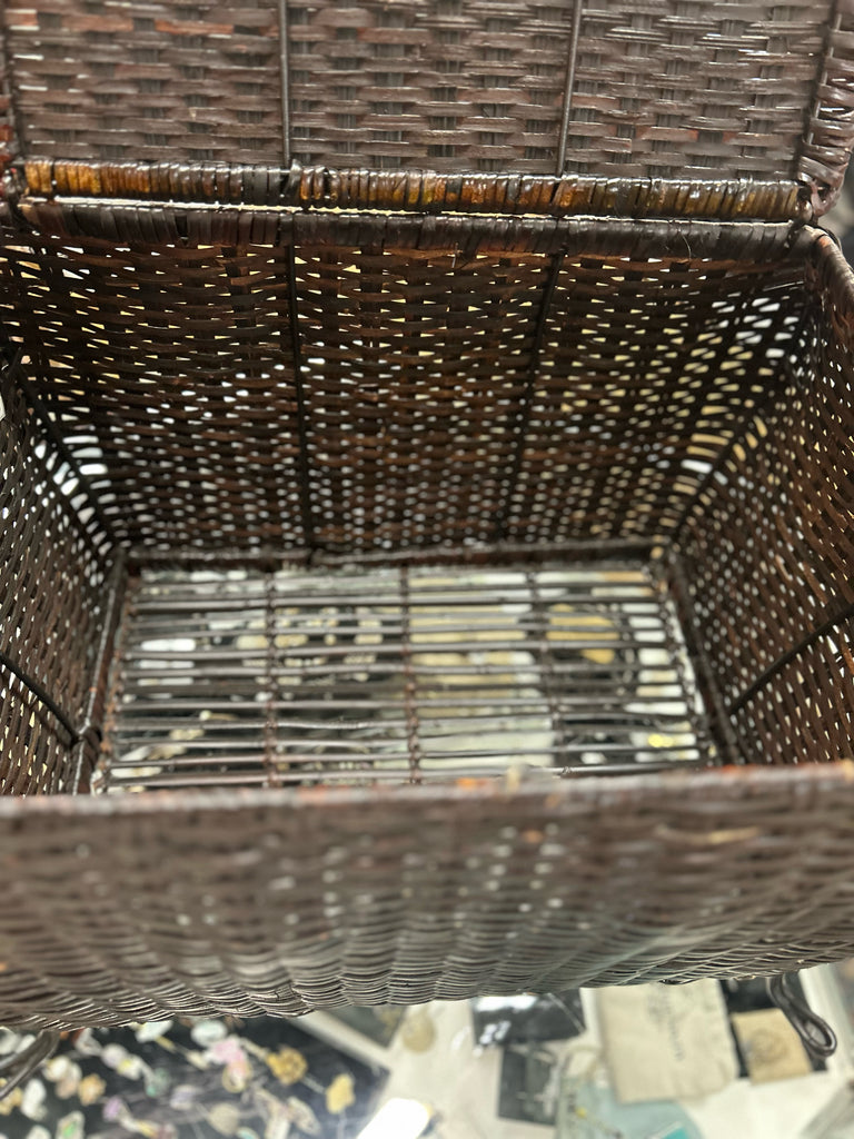 Black Iron & Rattan Hinged Lidded Trunk 20.5x15x15