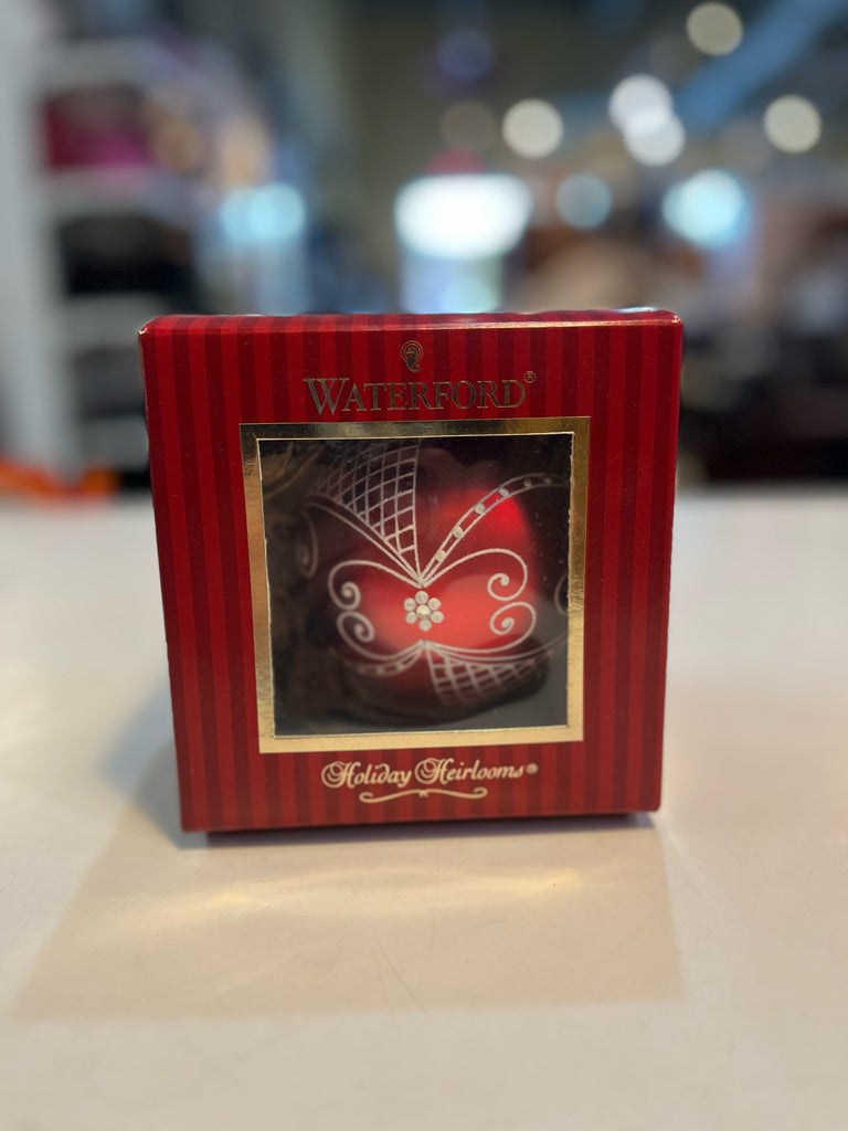 Waterford Holiday Heirloom Red "Regal Lace Ball" Ornament w/ box