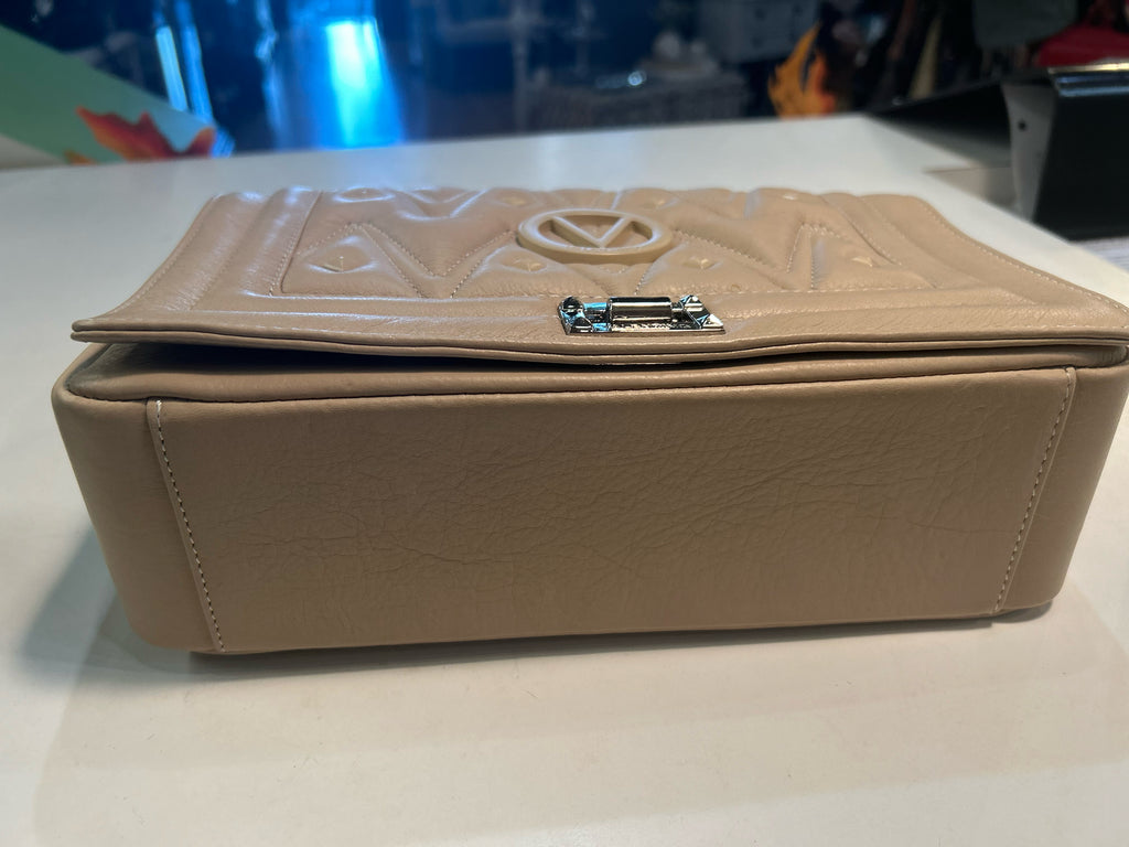 Valentino Alice Quilted Diamond Flap Handbag Beige